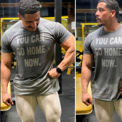 A message that is completely invisible until you sweat so you know when it's time to go home. Featuring Omegastretch  and Ultrasoft fabric to give you the mobility and comfort you need on a workout shirt.