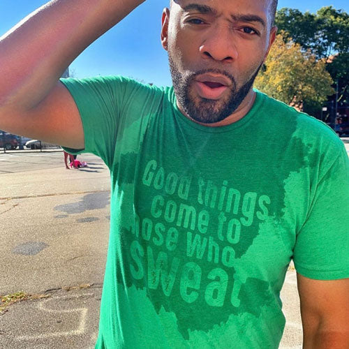 Our Sweat Activated T-Shirts have a hidden message that only shows when you sweat.